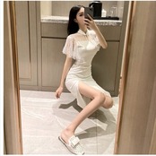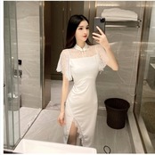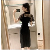 ワンピース マーメイド ワンピースドレス パーティードレス レース 膝丈 シースルー ハイネック マーメイド 透け感 上品 きれいめ 半袖