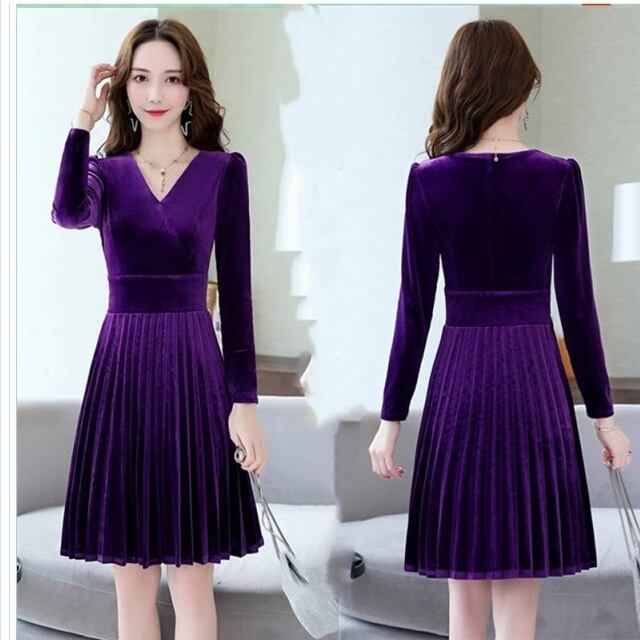 レディース 大きいサイズ 服 ニットワンピース ニットワンピ レディース Vネック 長袖 ミモレ丈 プリーツスカート ニット ワンピース 大
