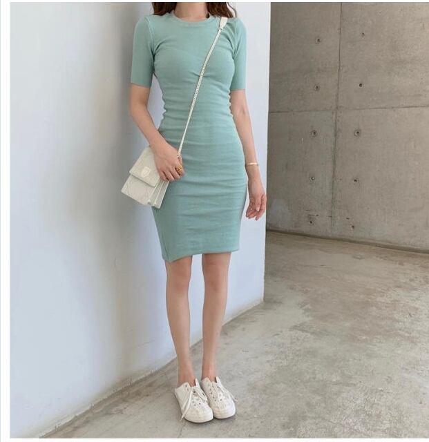 ワンピース マーメイド ワンサイド マーメイドヘム タイトワンピース 着回し 30代 40代 半袖 個性的 高級感 無地 お呼ばれ 膝丈 サイドス