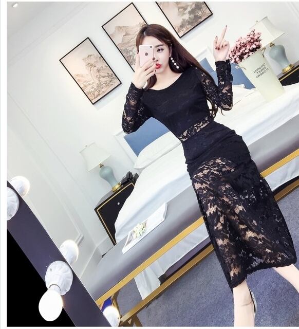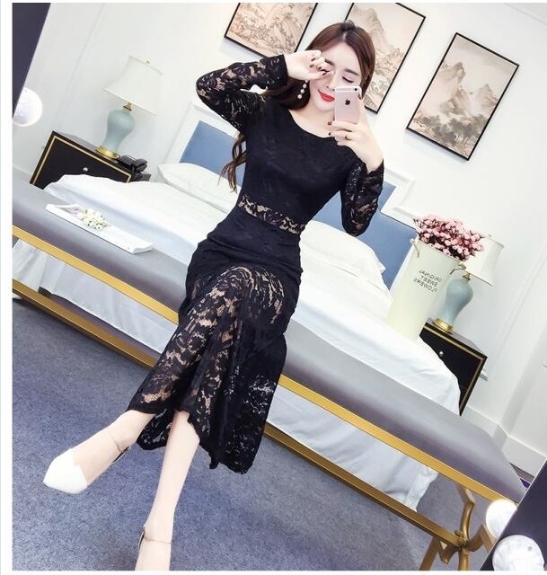 ワンピース マーメイド ワンピース レディース レース マーメイドスカート タイトワンピ 長袖 秋冬 マキシ丈 披露宴 二次会 お呼ばれ パ
