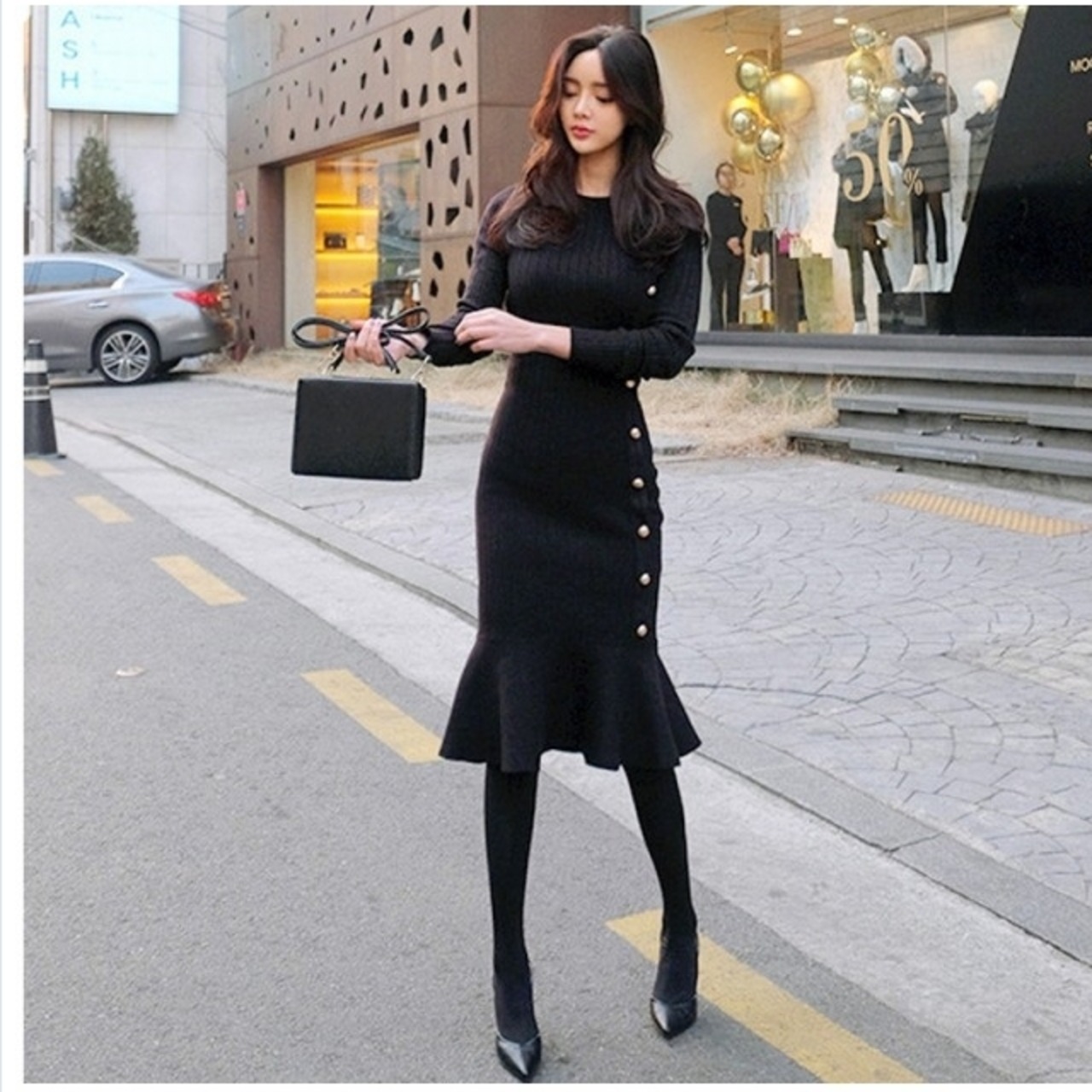 ワンピース マーメイド 長袖ワンピース レディース ニットワンピース タイト リブニットワンピース タイト フェミニン 大人かわいい マー