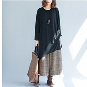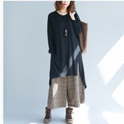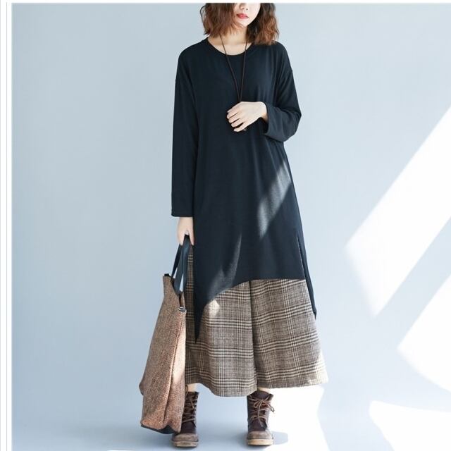 レディース 大きいサイズ 服 ワンピース ワンピ レディース ラウンドネック 長袖 レース裾 ひざ丈 ミモレ丈 ワンピ ワンピース 大きいサ