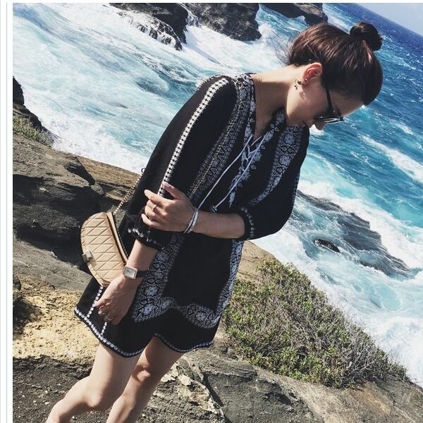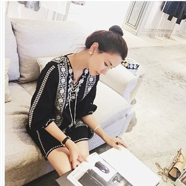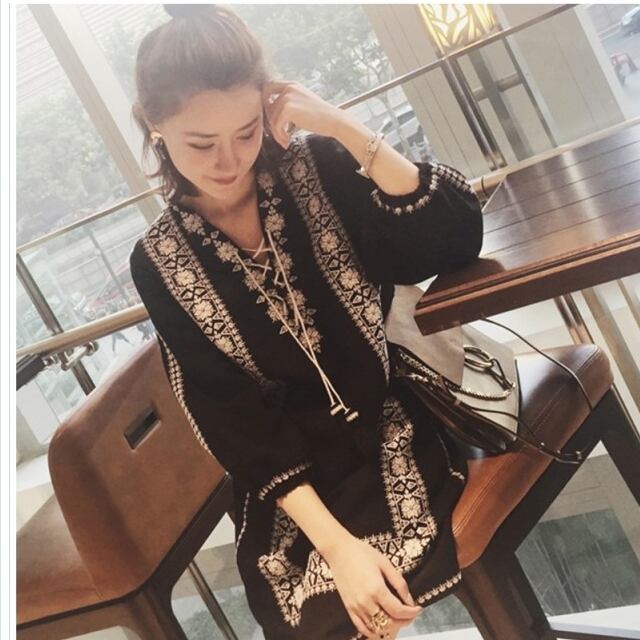 レディース 大きいサイズ 服 ワンピース チュニックワンピース ミニスカート ショートワンピース 花刺繍 ボヘミア レトロ 長袖 エスニッ