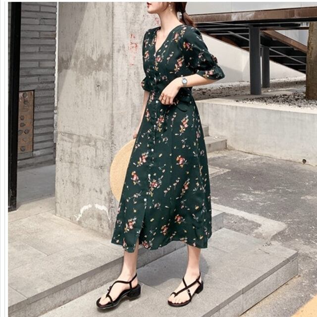 ワンピース 小花柄 花柄 ワンピース 花柄 ロングワンピース 小花柄 ワンピース vネック レディース vネック ワンピース レディース ワ