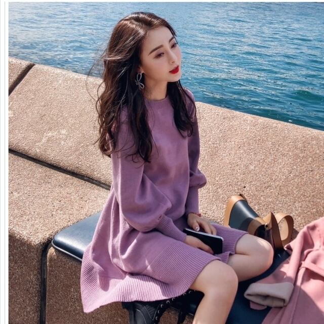 フェミニン ワンピース ウールワンピース ニットワンピ レトロ ドレス ファッショナブル フェミニン 大人かわいい 上品 通勤 オフィス デ