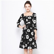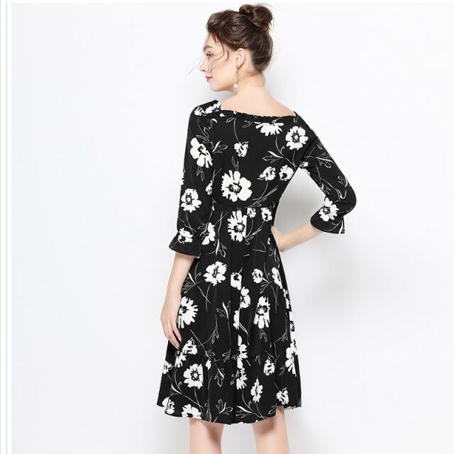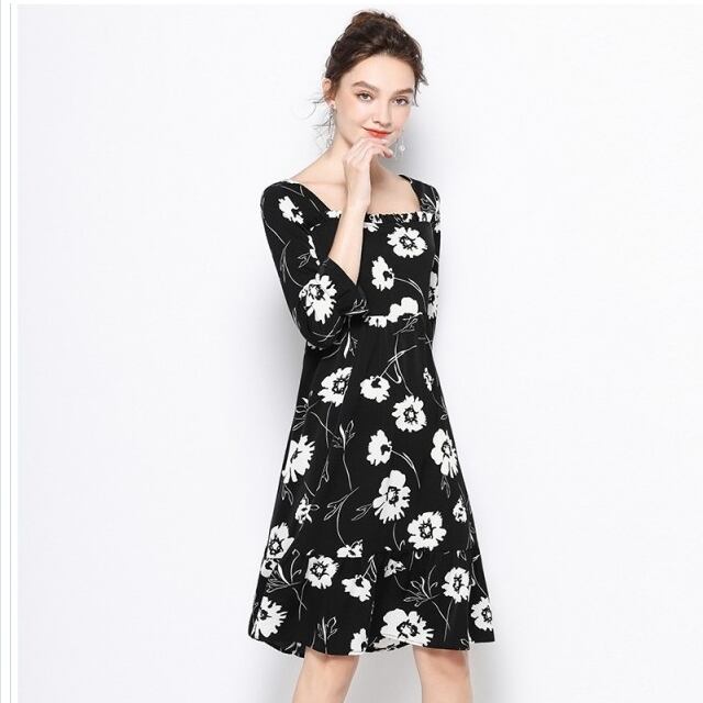 レディース 大きいサイズ 服 大きいサイズ レディース 花柄ワンピ フレアワンピース バイカラー L 3L 4L 5L ブラック ネコポス可