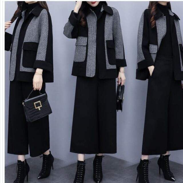 レディース 大きいサイズ 服 スーツ セットアップ レディース ジャケット ワイド クロップドパンツ 2点セット バイカラー 大きいサイズ