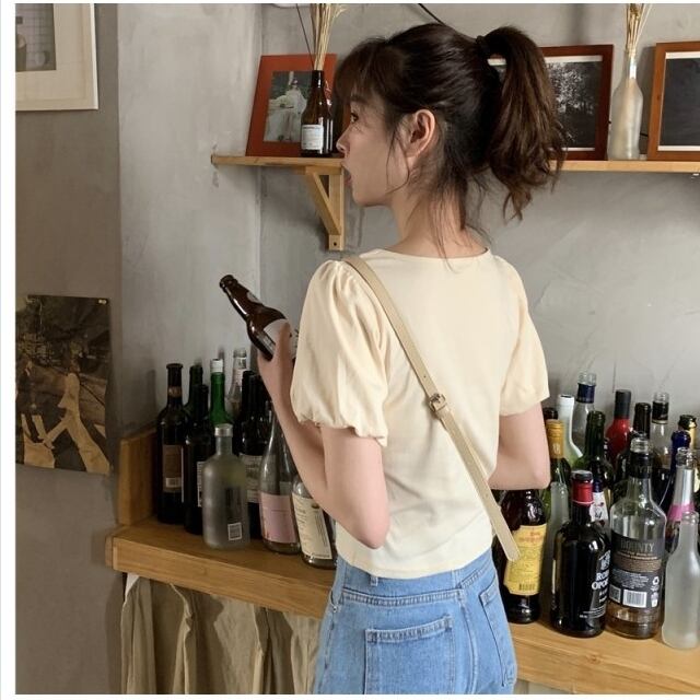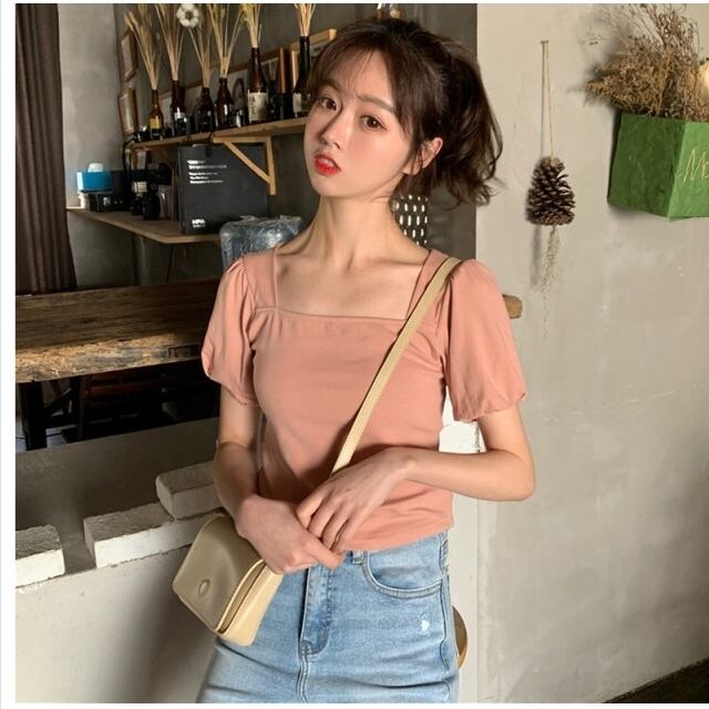 フェミニン ブラウス カットソーブラウス スクエアネック パフスリーブ ガーリー フェミニン ナチュラル ホワイト ピンク クリーム 夏