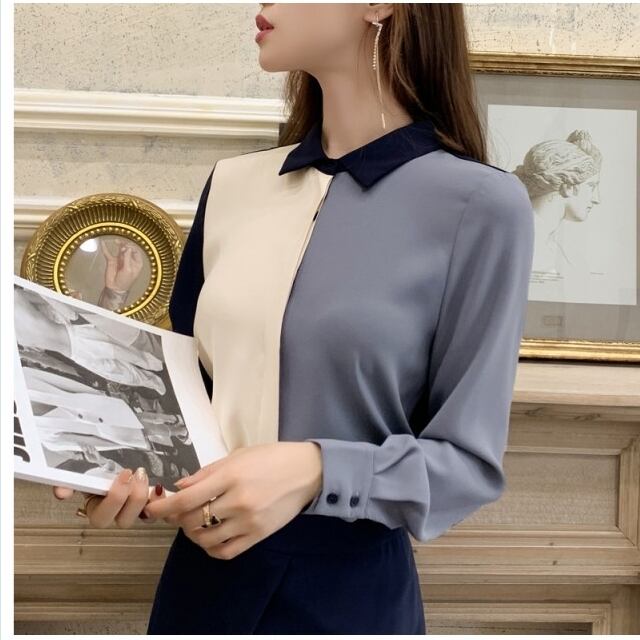 フェミニン ブラウス 韓国 ファッション レディース トップス ブラウス シャツ 春 秋 冬 パーティー ブライダル トリカラー 比翼仕立て