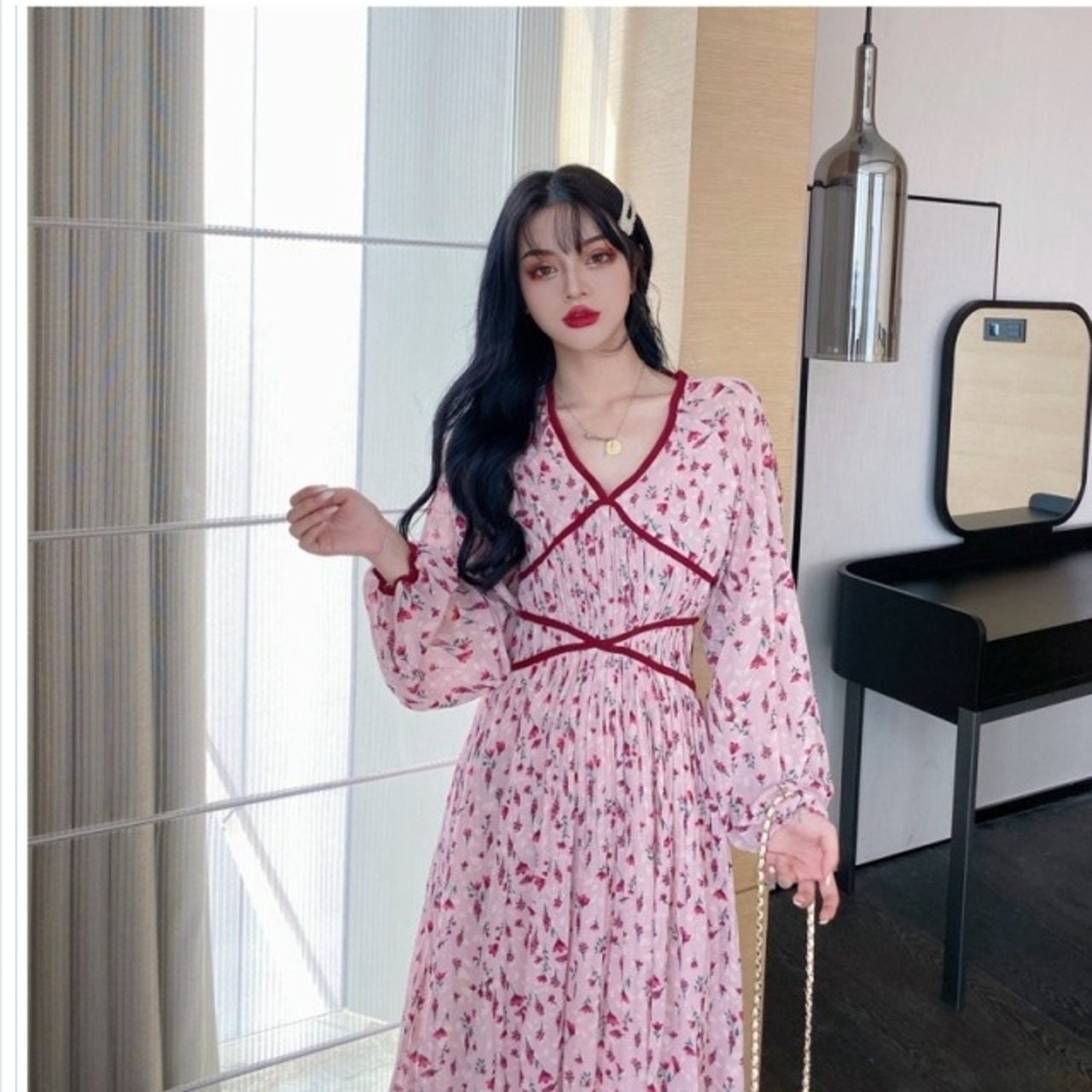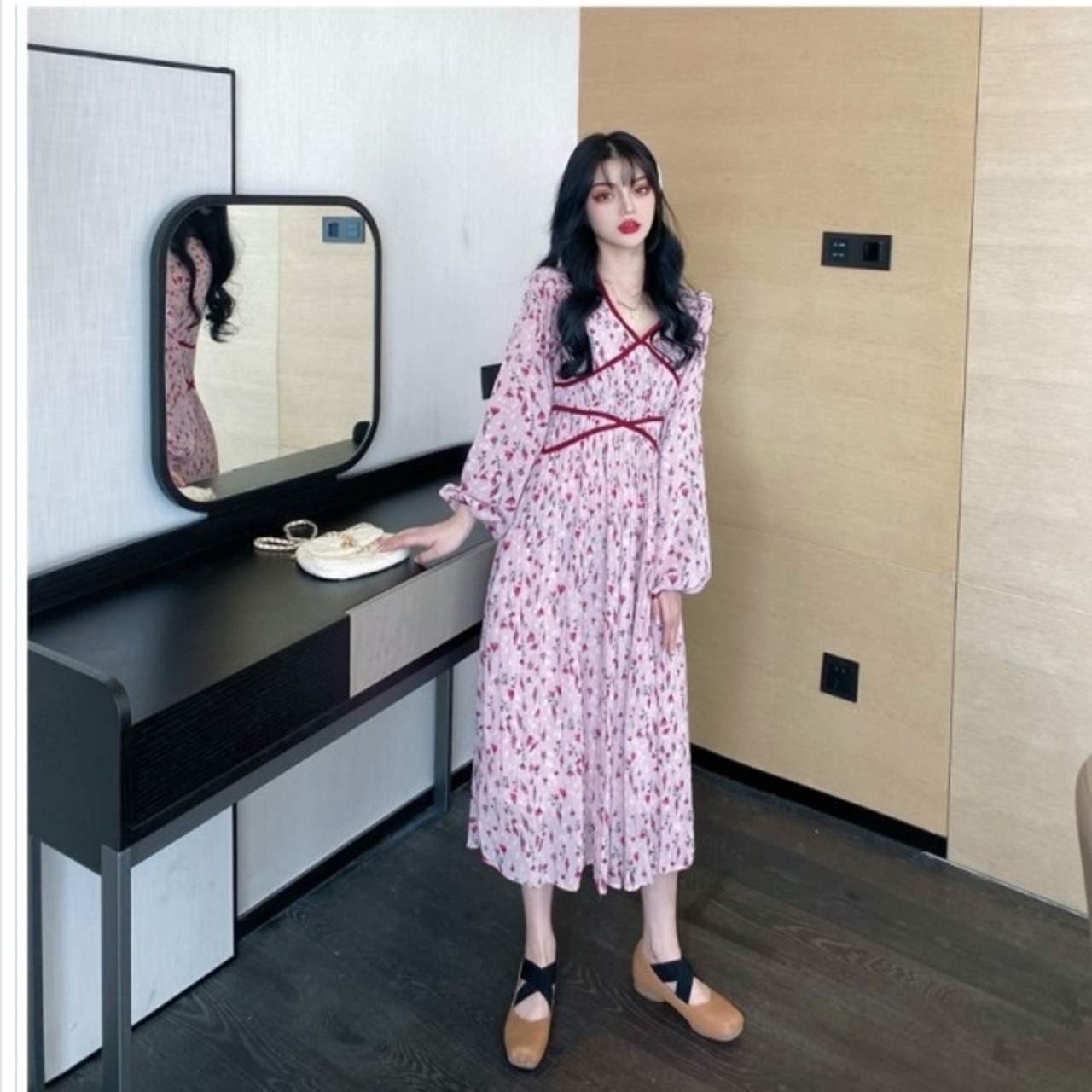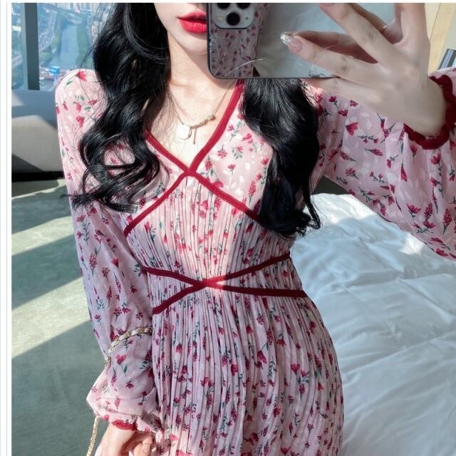 ワンピース 小花柄 大きいサイズ レディース フラワーワンピース シフォンワンピ プリーツ 小花柄 L 3L 4L 5L ピンク ネコポス可