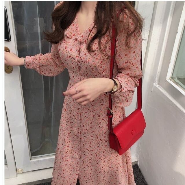 ワンピース 小花柄 大きいサイズ レディース 小花柄ワンピース シフォンワンピ カシュクール 3L 4L 5L 6L ベージュ ネコポス可