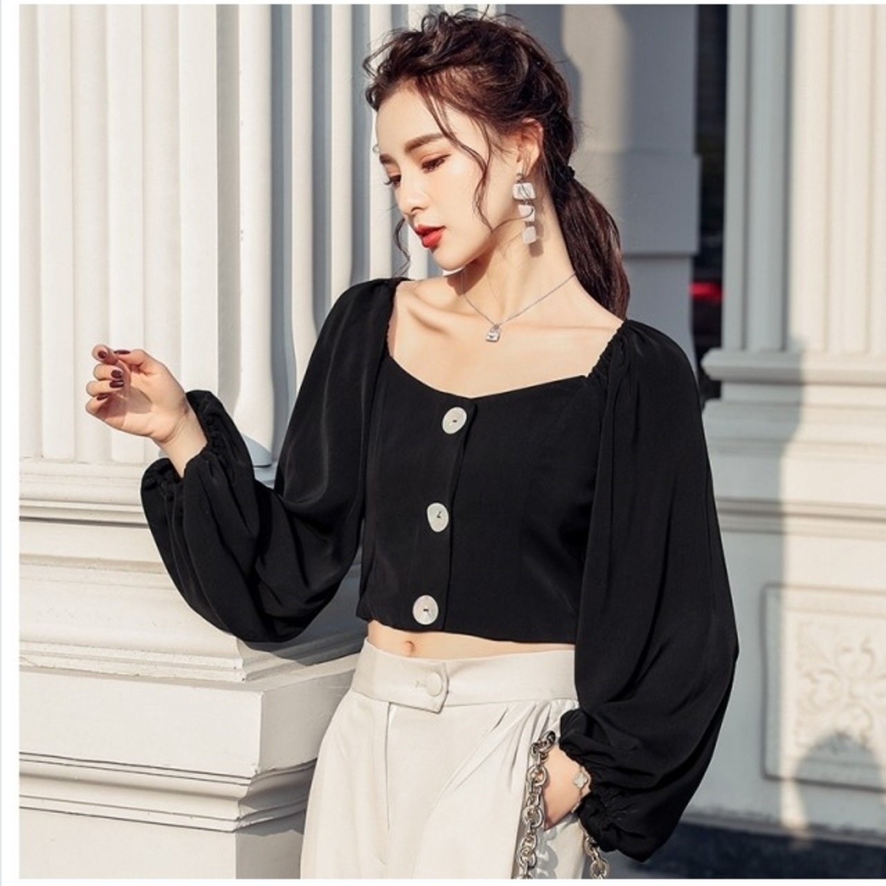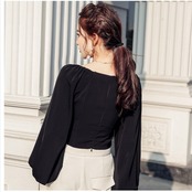 フェミニン ブラウス ボリューム袖 ブラウス トップス レディース シャツ フロントボタン スクエアネック フェミニン シンプル きれいめ