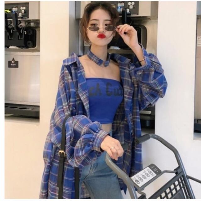 フェミニン ブラウス ドラッグハニー 着回し抜群 万能 ゆったり チェック柄 袖フリル スリーブ シャツ ブラウス 長袖 トップス アウター