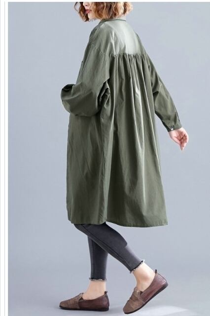 レディース 大きいサイズ 服 冬新作 ギャザースリーブ スタンドカラー ドロストシャツワンピース トップス ワンピース ワンピ ロング ミ