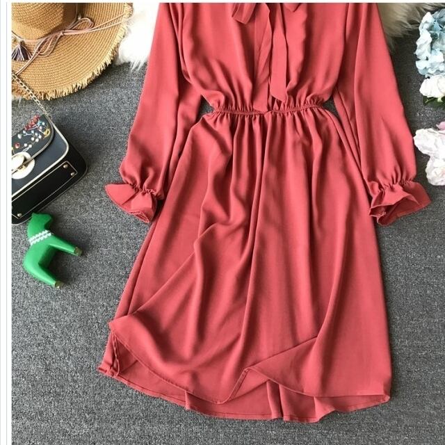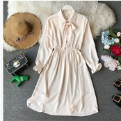 フェミニン ワンピース ドラッグハニー サテン 生地 ボウタイ ワンピース 長袖 光沢 きれいめ フリーサイズ モード系 パンク ロック V系