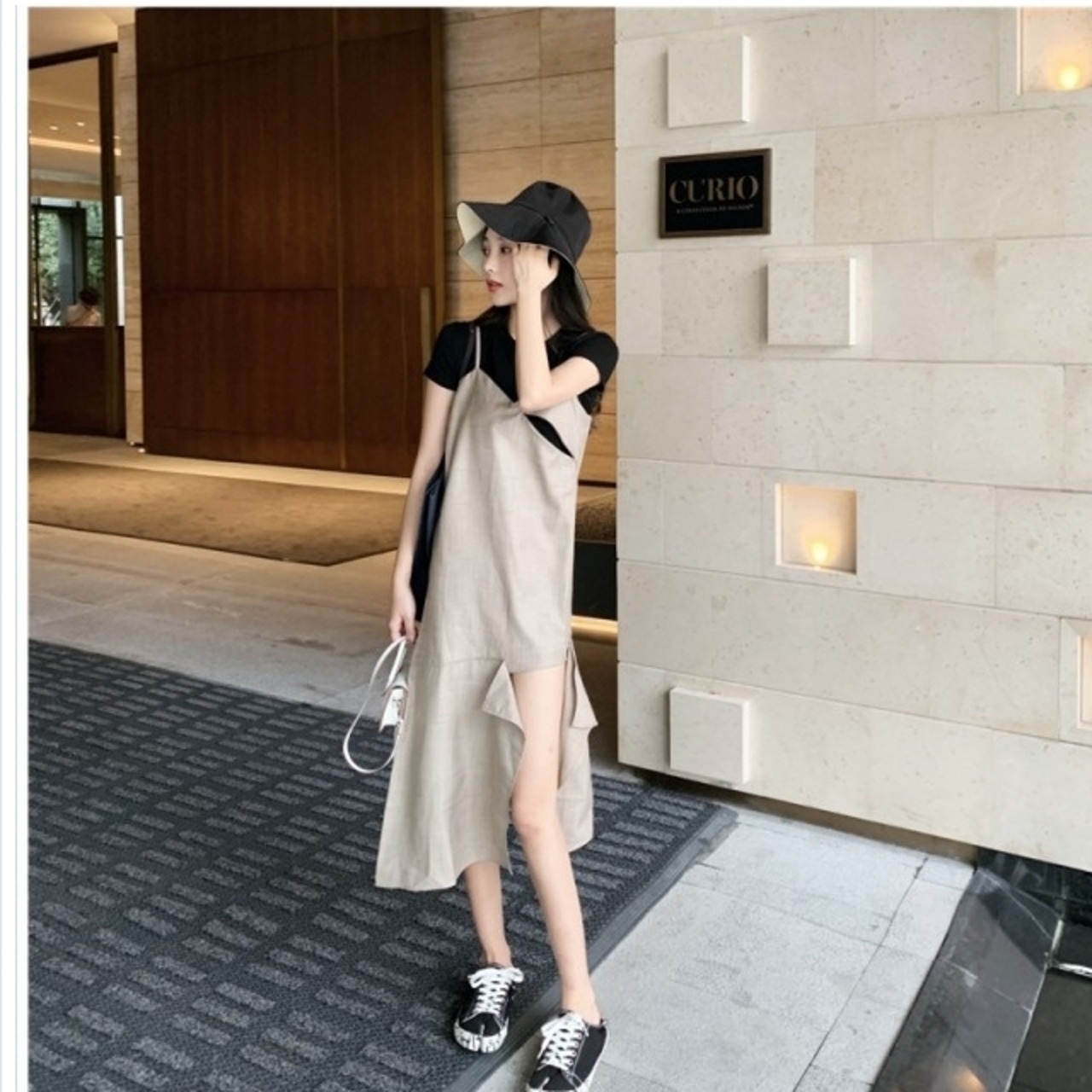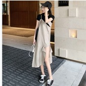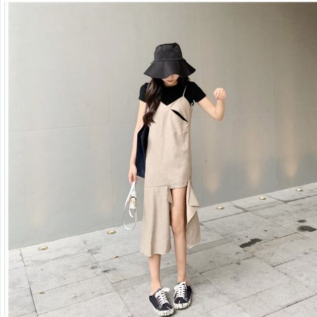フェミニン ワンピース コットン リネン 綿 麻 ワンピース ジャンスカ サロペット ミックスリネン ワンピ ジャンパースカート オールイン