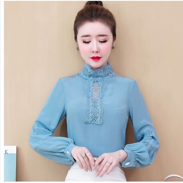 フェミニン ブラウス ブラウス ニット レース ハイネック 長袖 無地 大人可愛い 体型カバー カジュアル 韓国ファッション 春夏 デート オ