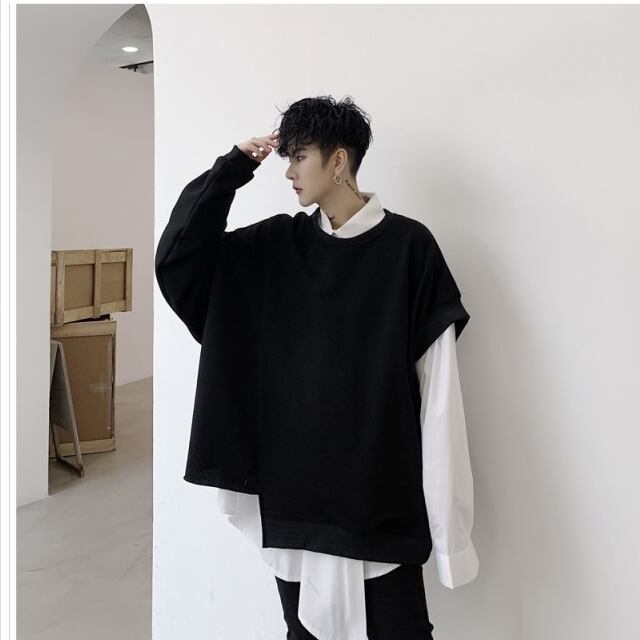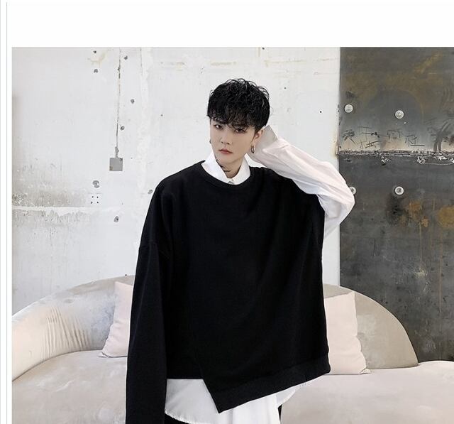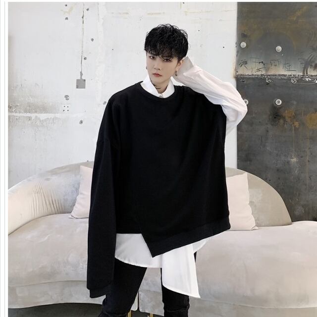 フェミニン ワンピース 韓国 ファッション レディース ワンピース 春 秋 冬 カジュアル ハイネック シャツ 重ね着風 ラフ Aライン韓国 オ