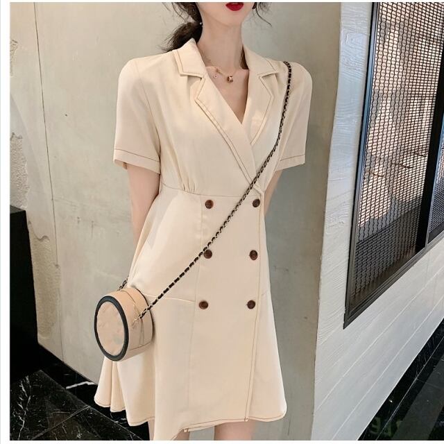 ワンピース マーメイド レディースファッション ワンピース ショート ミニ丈 半袖 スーツ 金ボタン レトロ マーメイドフレアー レディー