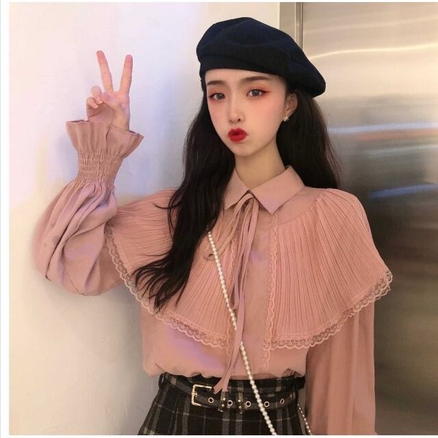 フェミニン ブラウス レディース シャツ ブラウス 長袖 フリルブラウス ボウタイ フェミニン パフスリーブ ベルスリーブ ゆったり 大人可