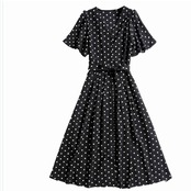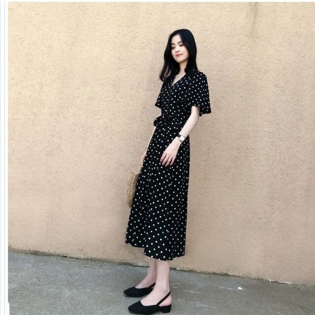 レディース 大きいサイズ 服 ロングワンピース ロングワンピ レディース ドット柄 水玉 スタンドカラー 半袖 マキシ丈 ティアードワンピ