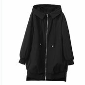 レディース 大きいサイズ 服 秋新作 大きいサイズ 長袖 ロングパーカー トップス パーカ ジップアップ パーカー ジッパー ブラック