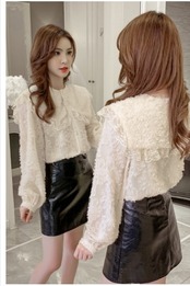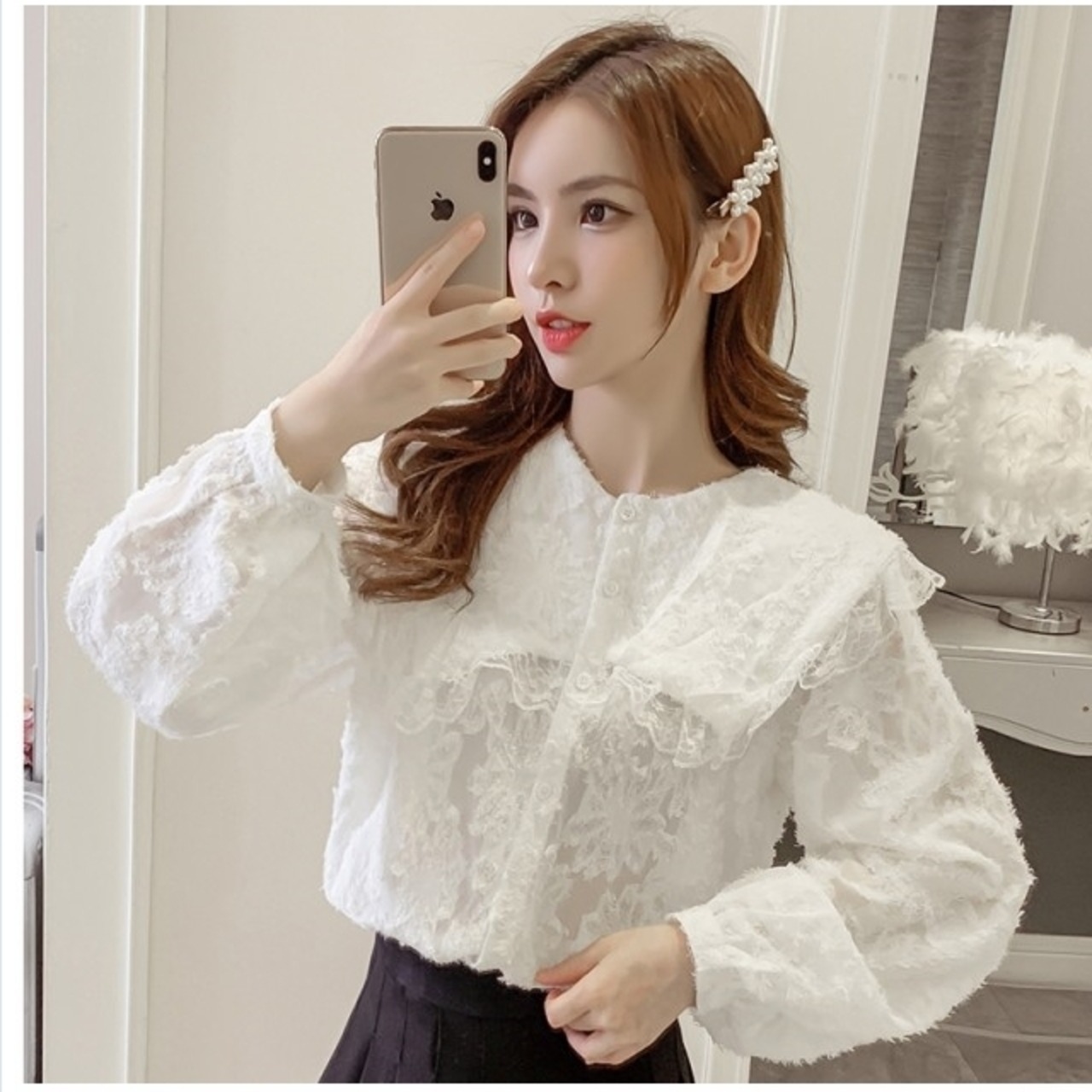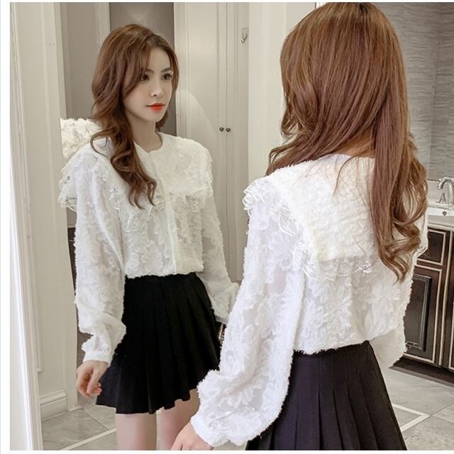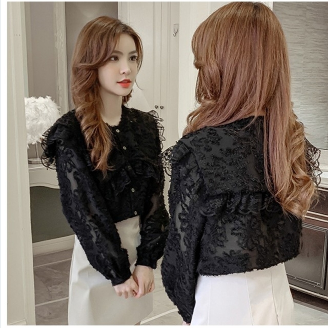 フェミニン ブラウス ブラウス レディース おしゃれ 春 レース 長袖 フリル ホワイト 白 ブラック 黒 シンプル 着まわし フェミニン 大人