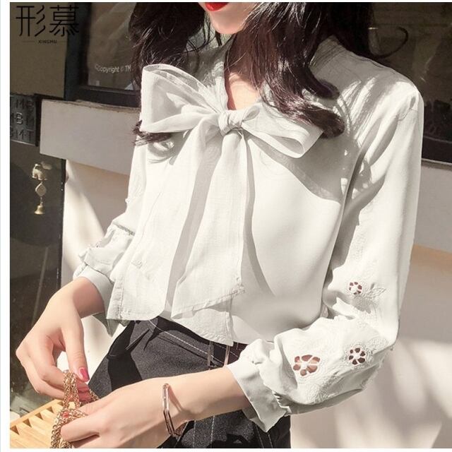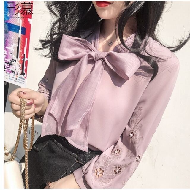 フェミニン ブラウス ブラウス レディース おしゃれ 長袖 ボウタイ 花柄 シンプル 着まわし 大人 上品 ホワイト 白 ピンク フェミニン