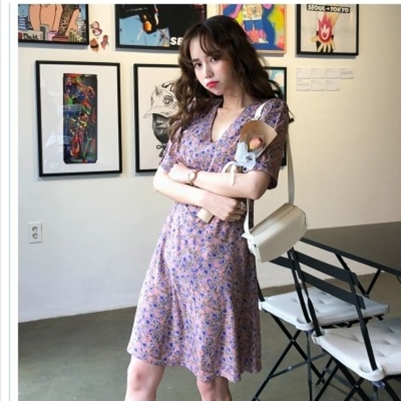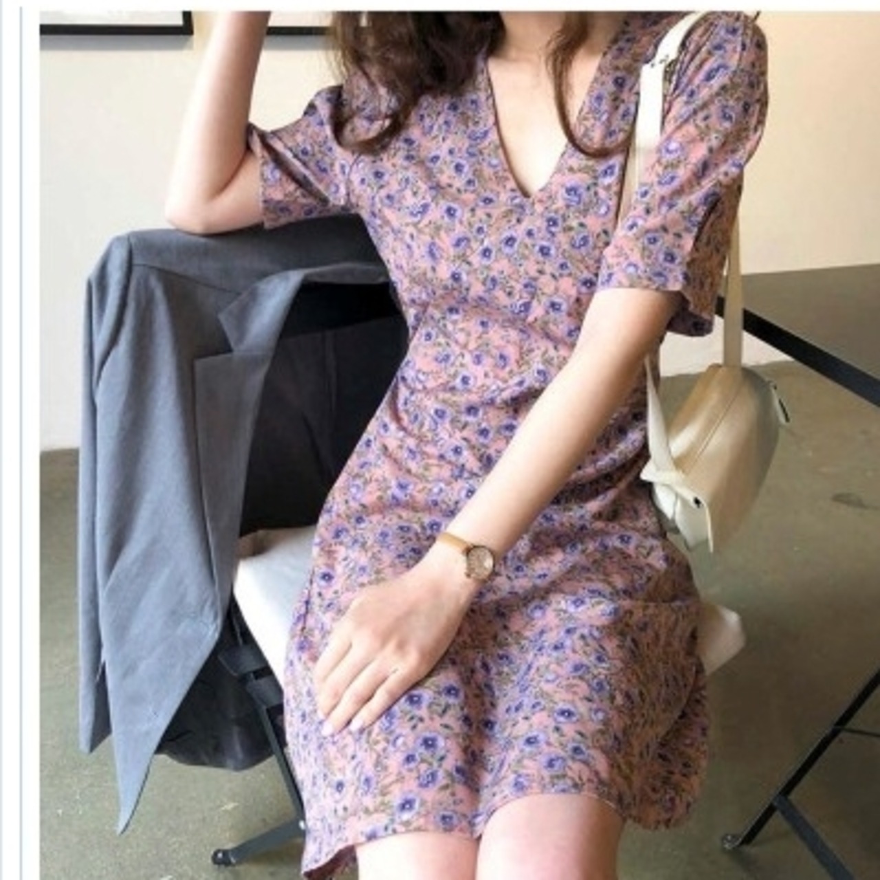 ワンピース 小花柄 小花柄 春夏ワンピース ミニワンピース ガーリースタイル 大人可愛い レトロ 韓国ファッション レディースワンピ