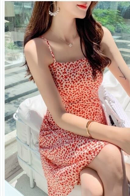 ワンピース 小花柄 リゾートワンピース ワンピース リゾート 韓国 ファッション 春 夏 小花柄 Aライン フレア ミディ丈 キャミ カジュア
