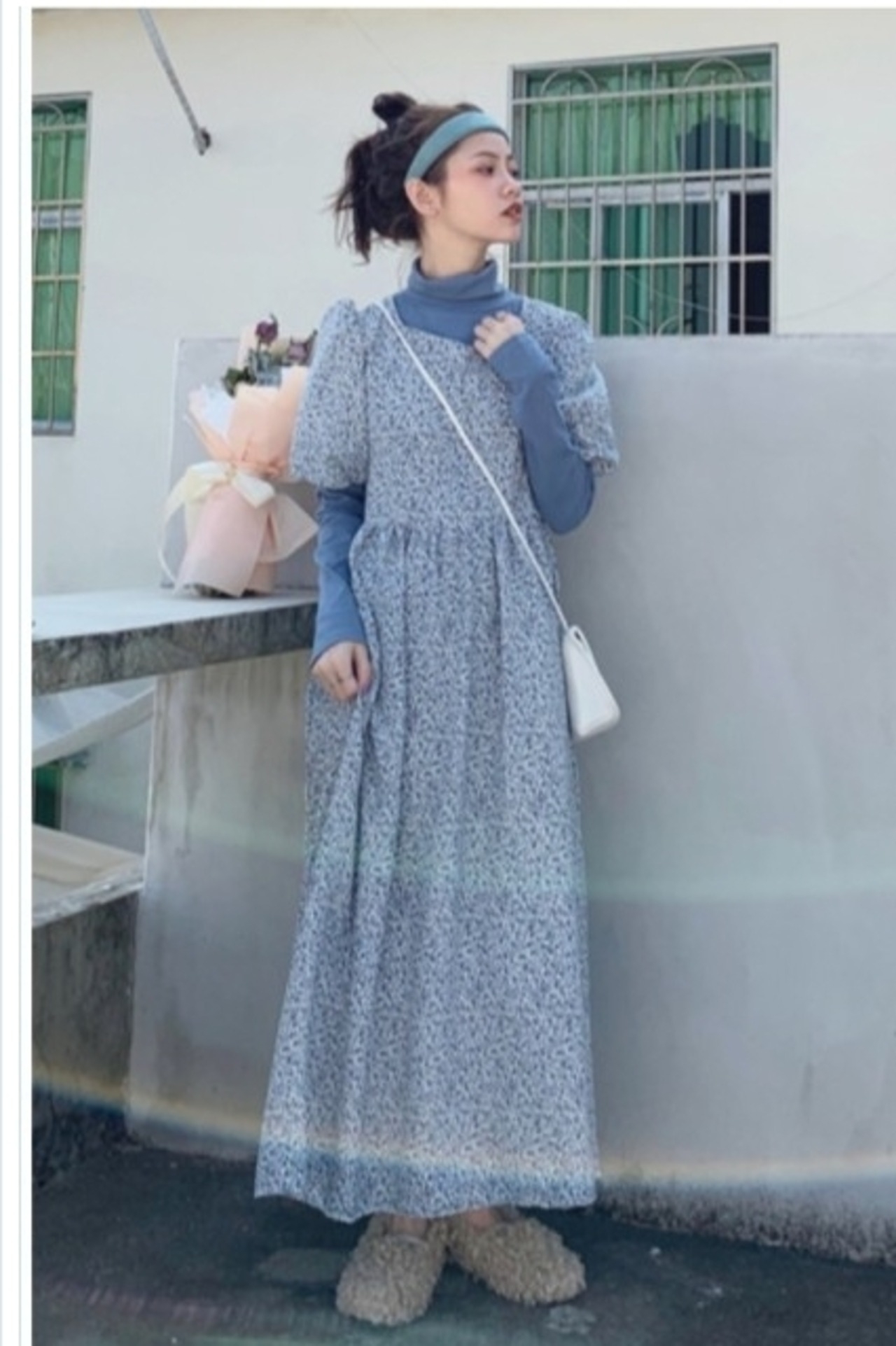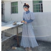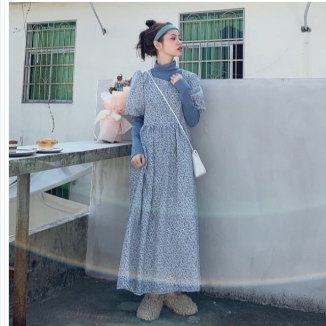 ワンピース 小花柄 ローラ アシュレイ カントリー 小花柄 スクエアネック コットン ワンピース ネイビー