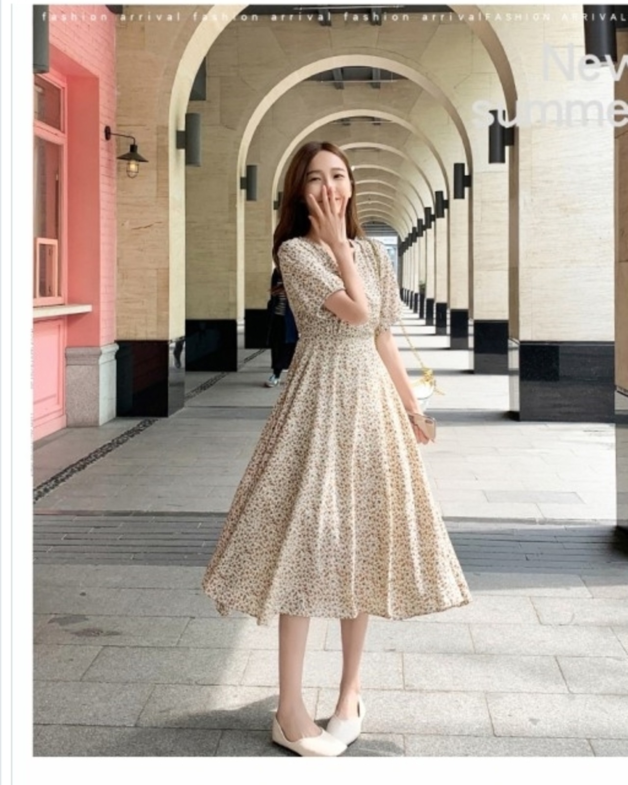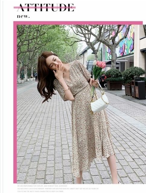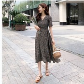 ワンピース 小花柄 ワンピース 選べる着丈 カシュクールワンピース シフォンワンピース ロングワンピース 膝下ワンピース 膝下 花柄