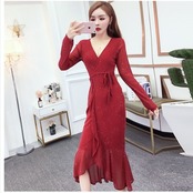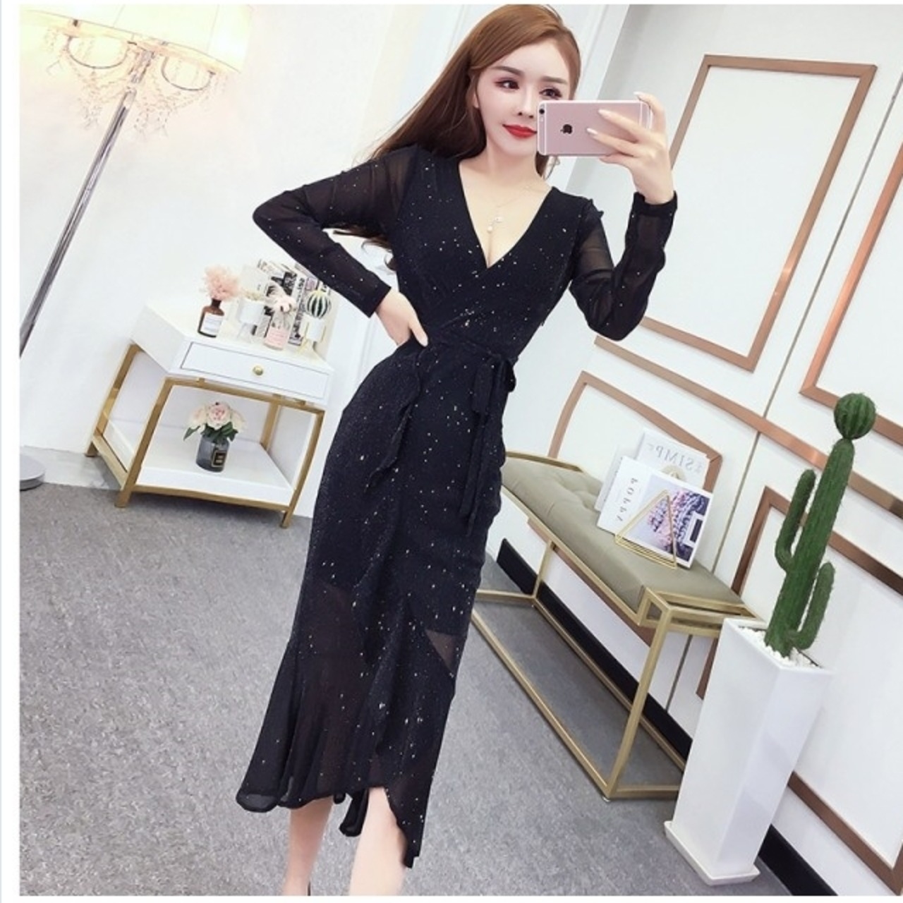ワンピース マーメイド ミディアムマーメイドワンピース パーティーワンピース マーメイドワンピース 長袖 フレアスリーブ マーメイド ワ