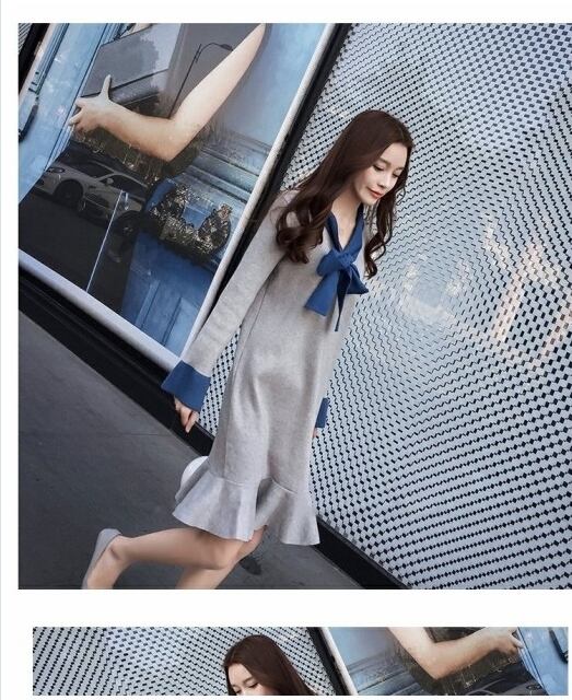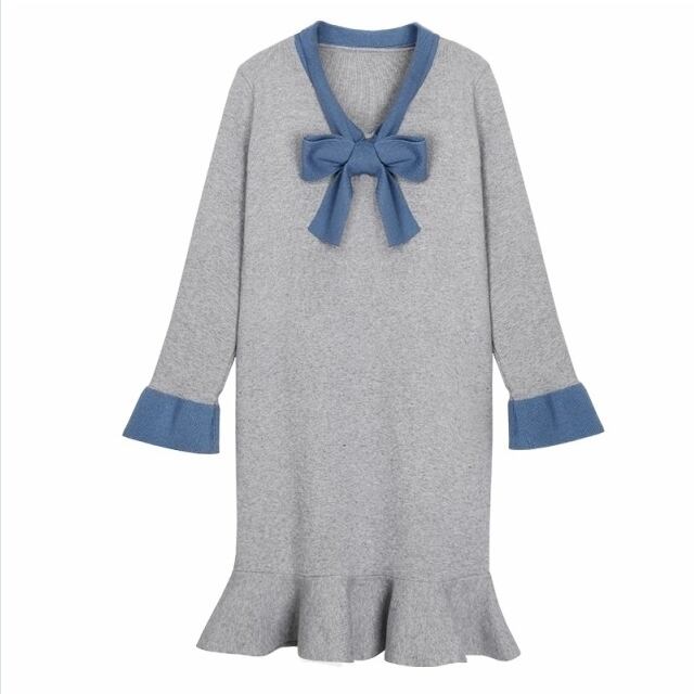 ワンピース マーメイド ボウタイリボン ワンピース 長袖 黒 ワンピース 膝丈 マーメイドワンピース レディース 大きいサイズ 3L 4L 5L フ