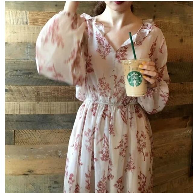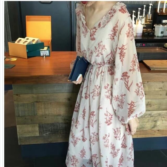 ワンピース 小花柄 ワンピース 小花柄 ロング 長袖 シフォン 大人可愛い デート お出かけ