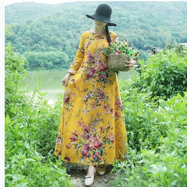 ワンピース 小花柄 ロングワンピース 春秋 スクエアネック フェミニン ワンピース 小花柄 レディース 優雅 春新作 シフォン エレガント