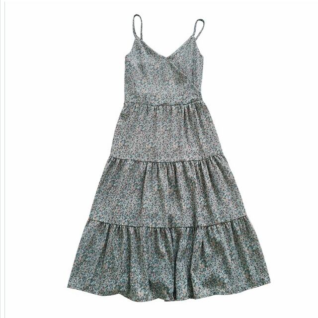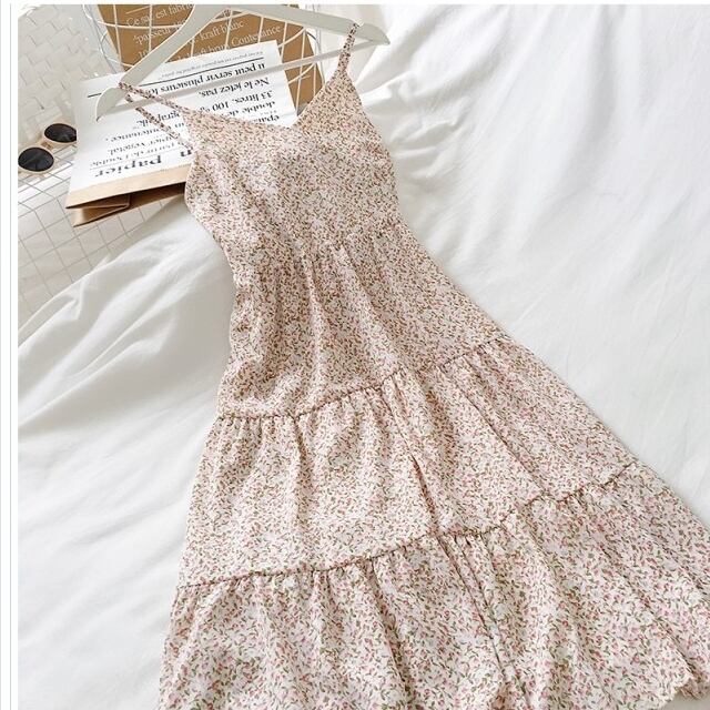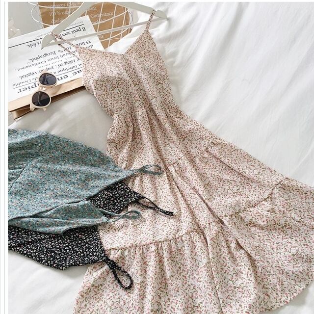 ワンピース 小花柄 小花柄切替えプリーツワンピース ワンピース 小花柄 ロング丈 キャミ バックリボン 切替え プリーツ ふんわり ガーリ