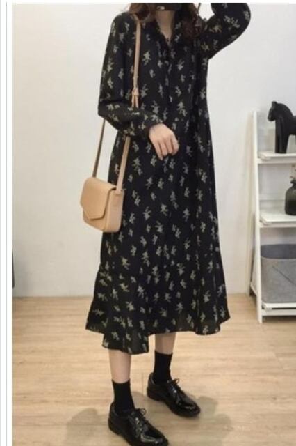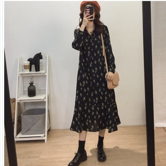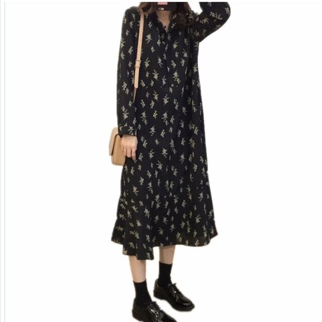 ワンピース 小花柄 花柄 ロング ワンピース 大きいサイズ 3L 4L 5L 小花柄 ワンピース 秋 aライン ミモレ丈 フレアワンピース 長袖 ゆっ
