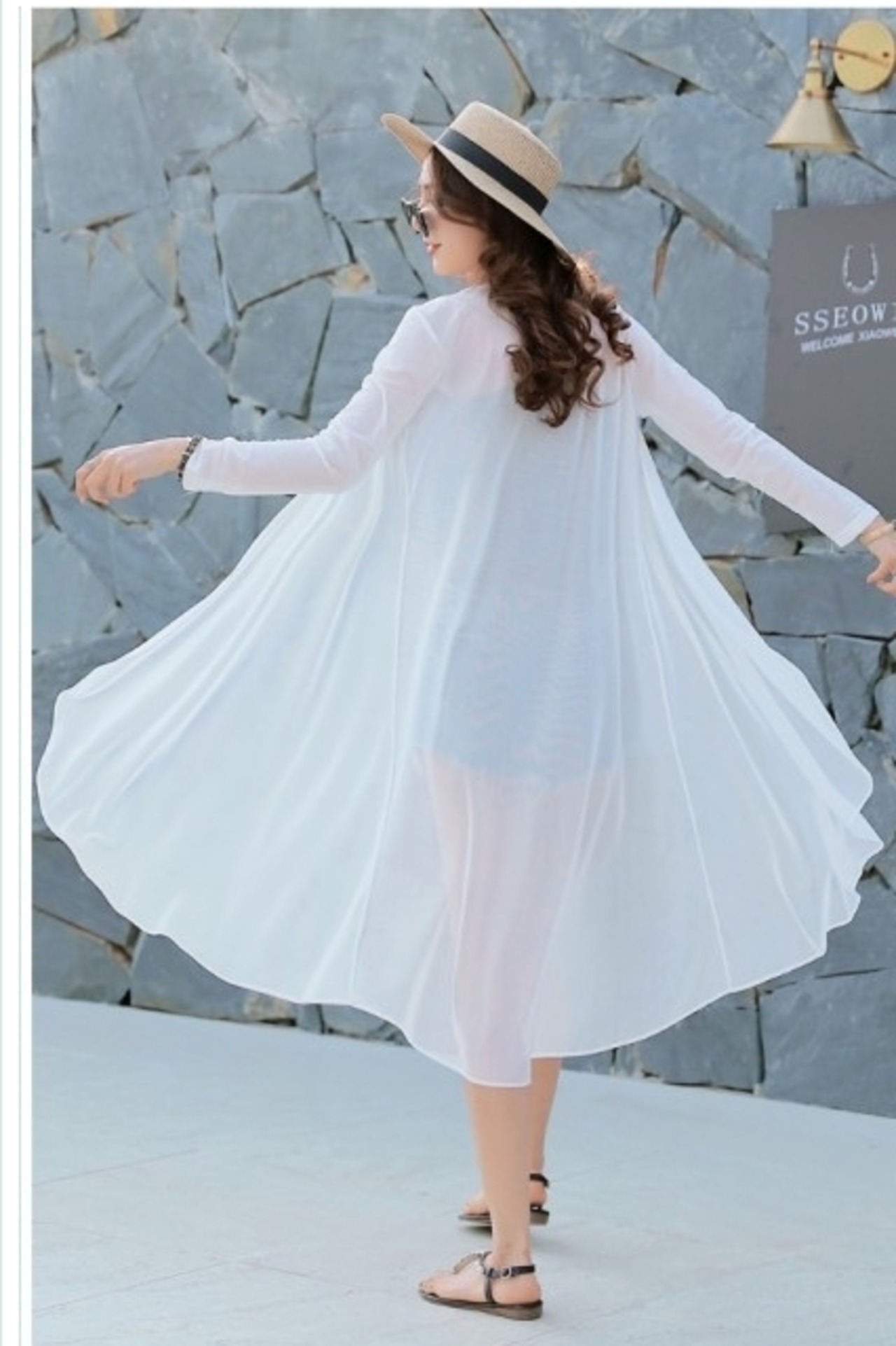 シースルー トップス 長袖 ロングカーディガン マキシ丈 シースルー シフォンロングガウン 無地 長袖 レース 上品 体温調整 冷房対策