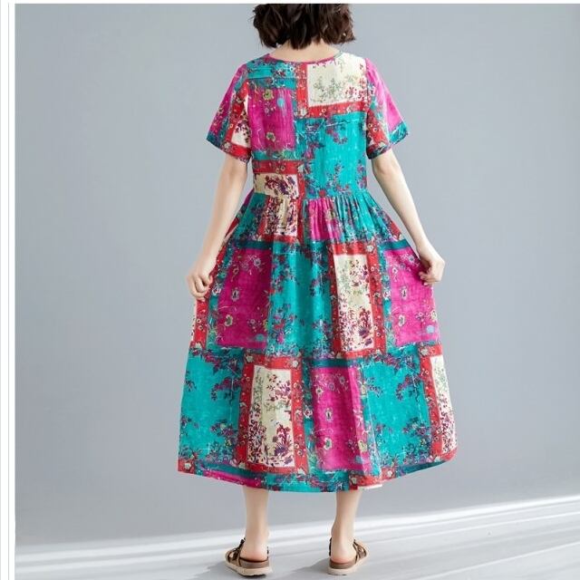 ワンピース 小花柄 大きいサイズ レディース 総柄 ロングワンピース 小花柄 レトロ ワンピ 半袖 フラワー柄 オーバーサイズ 韓国ファッシ