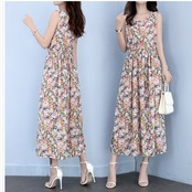 ワンピース 小花柄 ワンピース 小花柄 キャミ ストレート ロング丈 ガーリー シフォン 肌見せ ボタン レイヤード デコルテ