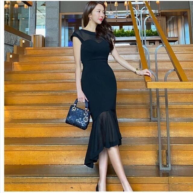ワンピース マーメイド 韓国 ファッション レディース ワンピース パーティードレス ひざ丈 ミディアム 春 夏 パーティー ブライダル 結