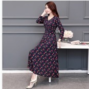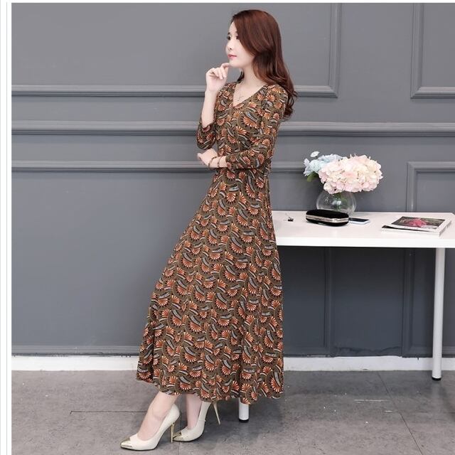 ワンピース 小花柄 ワンピース 黒 ミモレ丈 お呼ばれ デート 女子会 カシュクール 小花柄 ニット 20代 30代 40代 秋冬