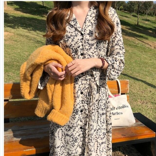ワンピース 花柄 ワンピース レディース 長袖ワンピース 花柄ワンピース レトロ ロング クラシカル 花柄 上品 Vネック カーディガン