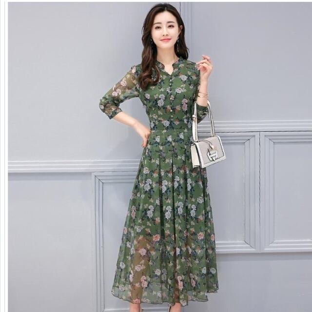 ワンピース 花柄 花柄ロングシフォンフレアワンピース シフォンワンピース フレアワンピース ワンピース 花柄 ロング マキシ 大きいサイ