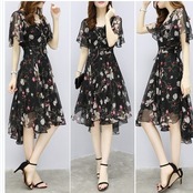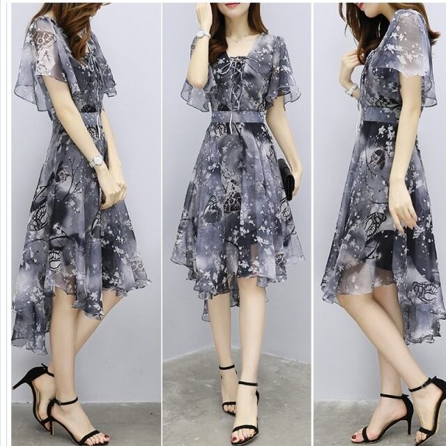 ワンピース 花柄 ワンピース レディース きれいめ シフォンワンピース 花柄 ティアード 夏ワンピース 半袖 ワンピ 40代 Aライン 膝丈ワン