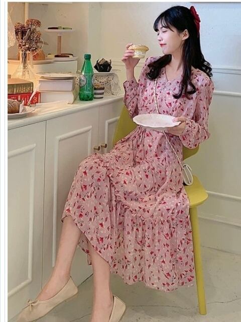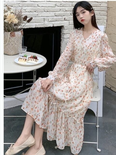 ワンピース 花柄 ワンピース 花柄ワンピース シフォンワンピース 大人の可愛いワンピース 花柄 ミモレ丈 可愛い 大人 長袖 体型カバー