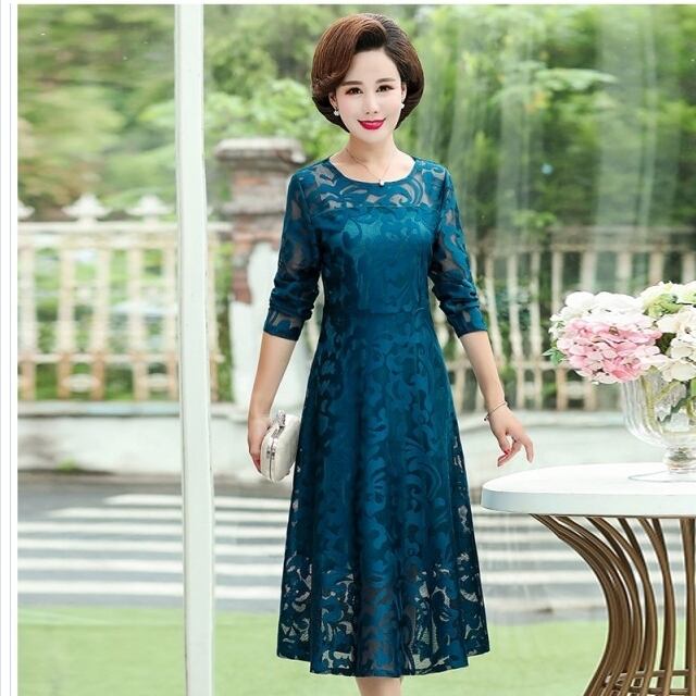 ワンピース 小花柄 長袖 マキシワンピース レースマキシワンピ チャイナ風 中国風 美ライン ハイネック 小花柄 ハイウエス ヴィン