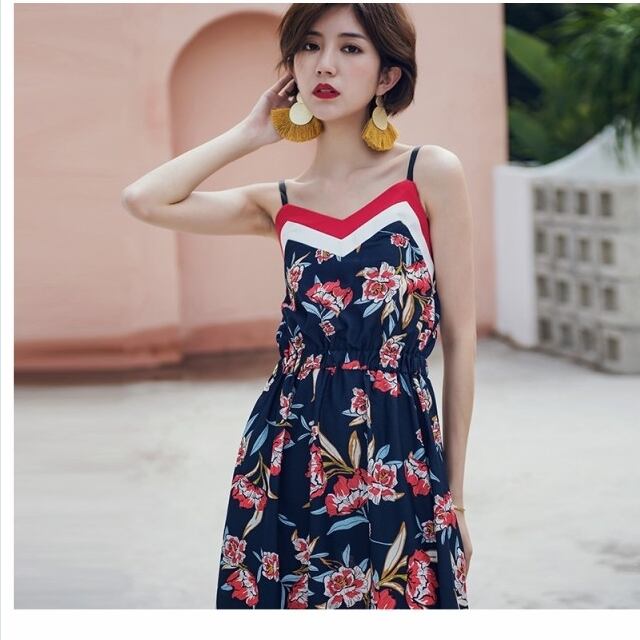 大きいサイズ サマーワンピース 大きいサイズ キャミワンピ ロング サマードレス Vネック 花柄 ハイウエスト サマーワンピース バックオ