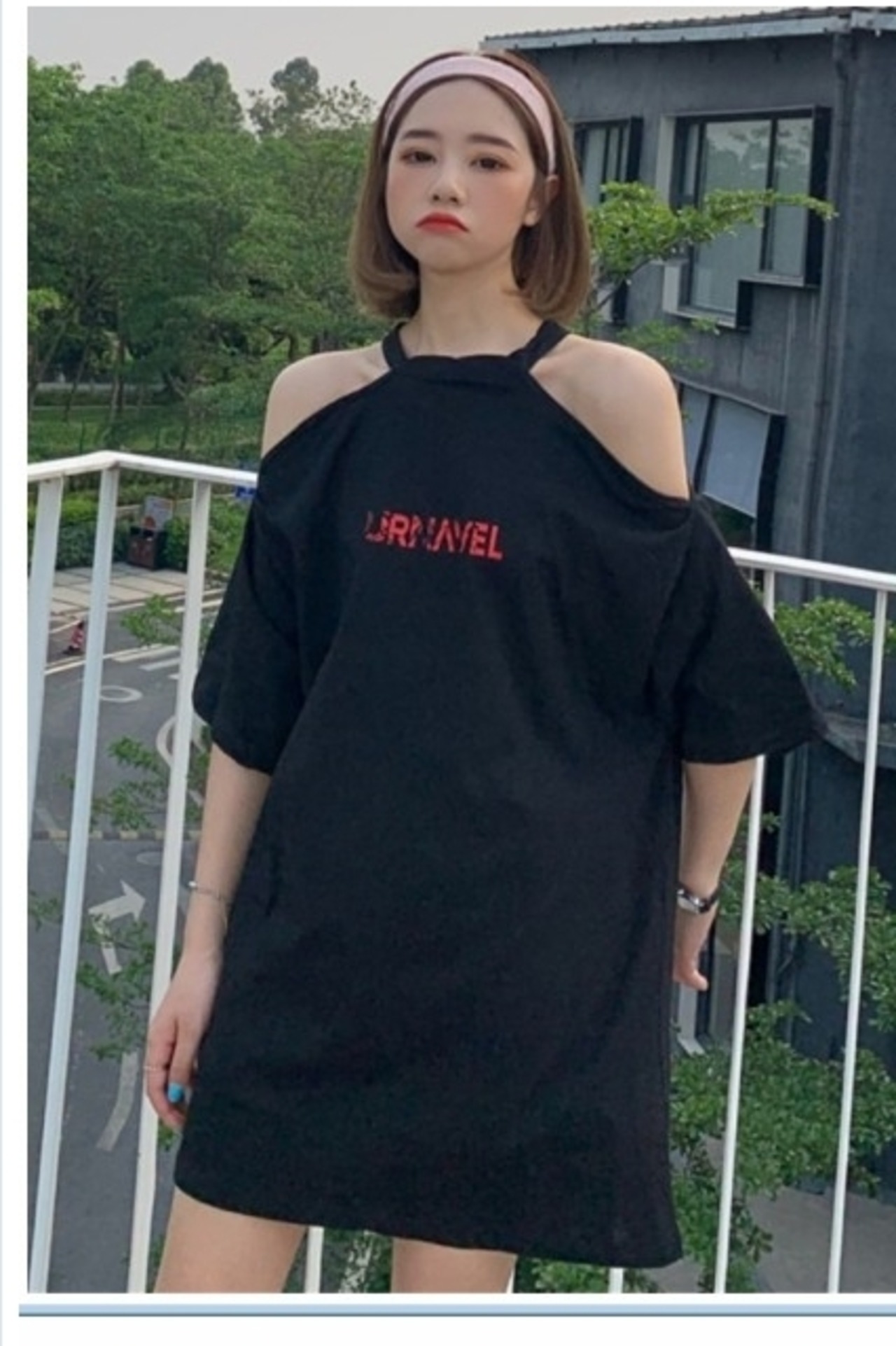 夏服 レディース ポルターネック ビッグシルエット ロングtシャツ ロゴtシャツ オフショルダー レディース 夏服 韓国 ファッション
